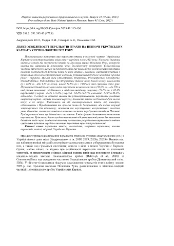 2024). У цій статті наводяться підсумки дослідження перельотів птахів влітку–восени