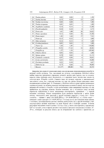6,87 ос./зустріч, хоча в окремі дні його чисельність зростала і коливалася в межах 10–