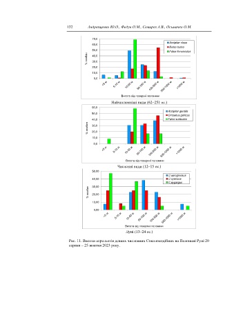 Рис. 11. Висоти перельотів деяких численних Соколоподібних на Полонині Руні 20