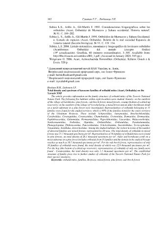 of detected families are mixed forests, represented by 20 taxa. The total density of oribatids in mixed