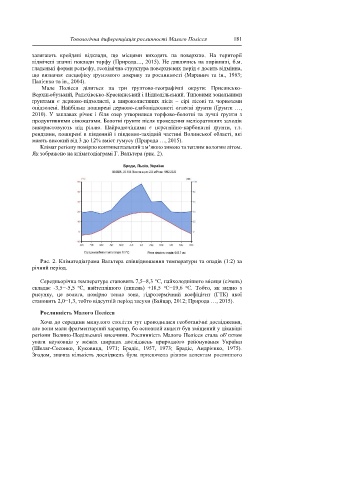 Рис. 2. Кліматодіаграма Вальтера співвідношення температури та опадів (1:2) за