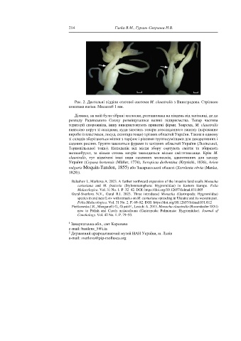 Рис. 2. Дистальні відділи статевої системи M. claustralis з Виноградова. Стрілкою