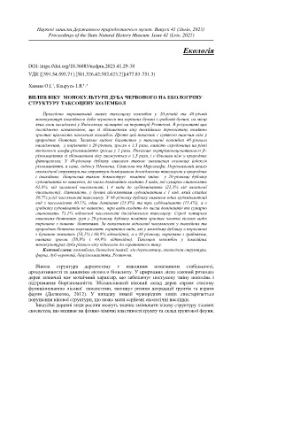 ВПЛИВ ВІКУ МОНОКУЛЬТУРИ ДУБА ЧЕРВОНОГО НА ЕКОЛОГІЧНУ
