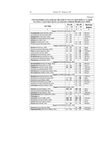 Таксономічний склад, відносна чисельність і частота трапляння (у %) видів