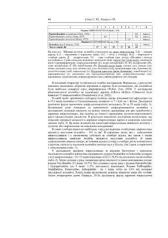 Згідно літературних даних (Капрусь, 2010) досліджену фауну деревних мікрооселищ