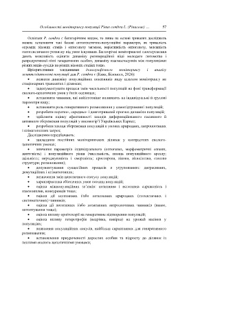 • виявити динаміку популяційних показників виду шляхом моніторингу на